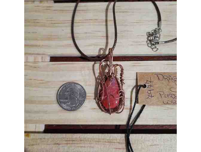 Handmade Natural Agate Dragon Veins Gemstone Solid Copper wire wrapped Pendant Necklace