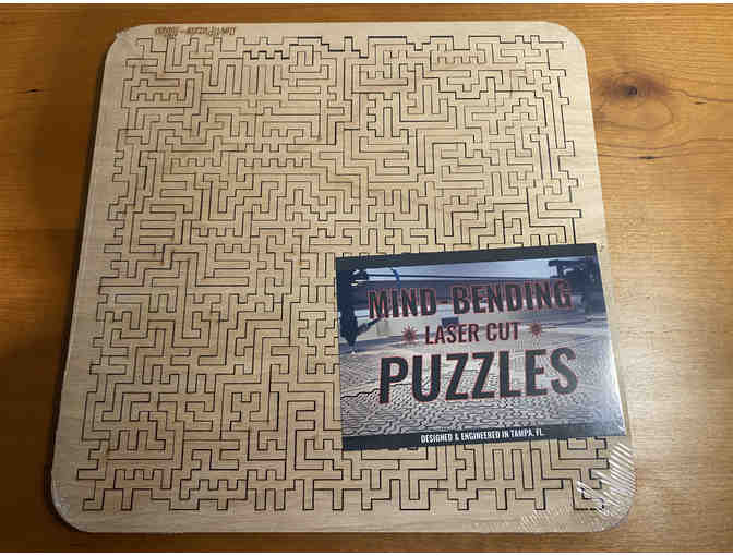 The puzzle contains 100 pieces in various shapes and was hand-crafted in the USA from laser-cut plywood. The front of each piece is made with light brown veneer, and the back is stained a rich ebony color so that you will know which side of the pieces should be up. The puzzle measures 11.3 inches by 11.3 inches and is ½ inch thick.