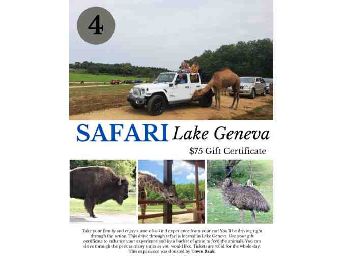 Take your family and enjoy a one-of-a-kind experience from your car! You'll be driving right through the action. This drive through safari is located in Lake Geneva. Use your gift certificate to enhance your experience and by a bucket of grain to feed the animals. You can drive through the park as many times as you would like. Tickets are valid for the whole day.