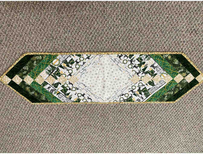 Quilted Christmas Table Runner in Green and Gold