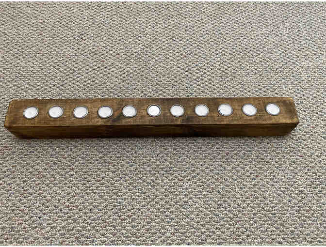 Bring warmth to any room and make a bold statement with a home decor item that is a piece of history. This Reclaimed Barnwood Candle Holder with eleven tealights would make a terrific centerpiece for your dining room table or a beautiful decoration on your mantle.