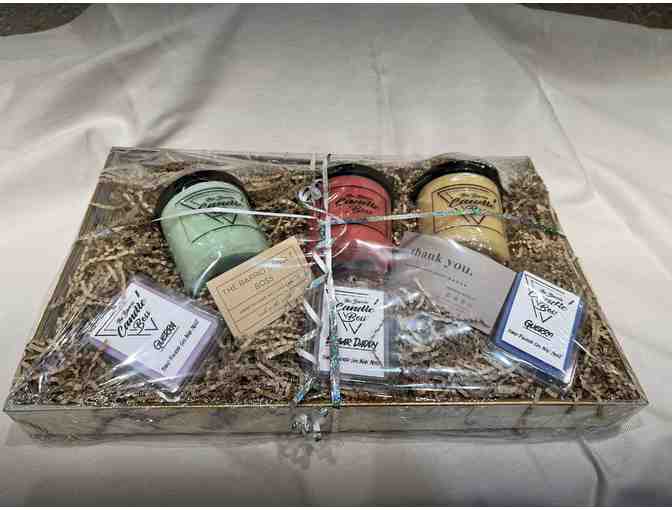 Three soy candles and three soy wax melts from local Tucson company - The Barrio Candle Boss. Candles come in a gift set with a tray.
