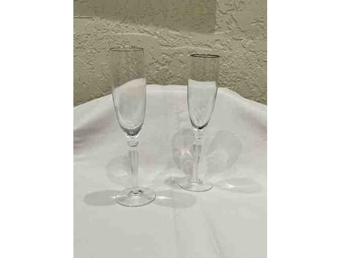 Set of four Waterford crystal champagne flutes - Carleton Platinum pattern