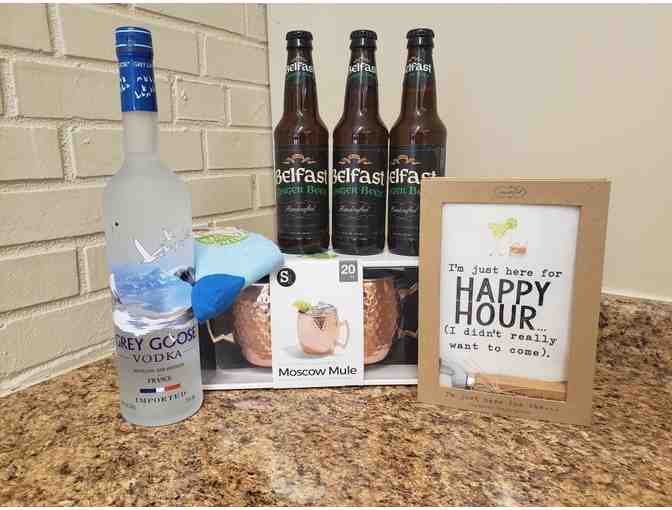 Copper Mugs (2), Ginger Beer (4), Grey Goose, Hand Towel w/ opener, napkins, lime (2-3) Donated by Stephanie Lake-Melton.