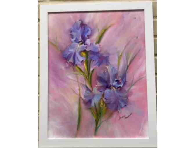 A beautiful framed "Summer Sunset Iris" painting. Donated by The Villiager Gallery