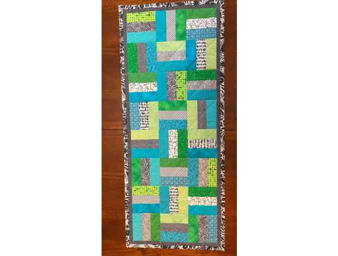 This quilted table runner has the perfect colors to accent your home. It is 14 x 34 and made of 100% cotton fabrics. Handmade with fine detail! It can be a one of a kind gift for yourself or someone you care about.