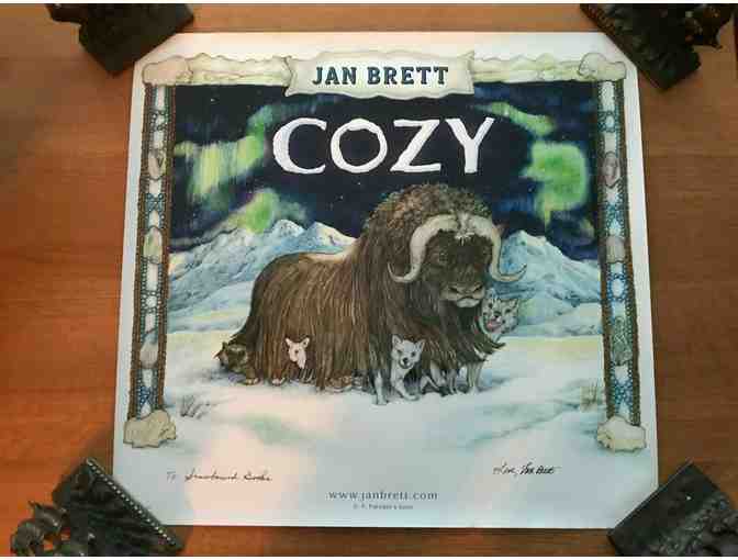 Illustrator Jan Brett has donated a signed book illustration poster. She has made an illustration of the Alaskan Musk Ox with its silky soft and warm under fur. Included with the poster is a list of all her illustrated books.