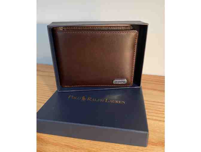 Brand new Polo Ralph Lauren leather passcase wallet in brown. In original packaging. Free Shipping!