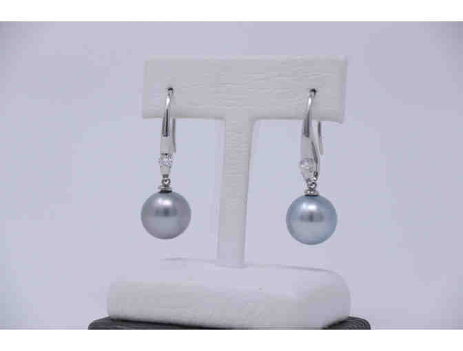 Adorn yourself with these 18 carat white gold 11.5 mm Tahitian dangle earrings and are accented with a full cut .25 carat full-cut diamonds