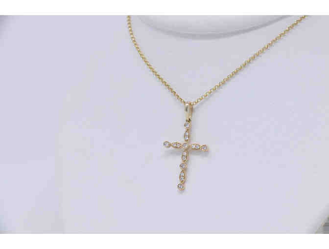 This 14 carat delicate milgrain-design diamond cross is a beautiful statement 16 inch necklace. With this intricate design you can wear it 24/7 or for a special evening luncheon or dinner.