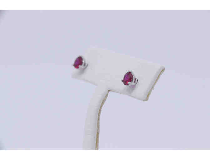 These 18 carat white gold ruby studded earrings make a simple statement. The intense ruby color will complement the natural ruby necklace or other diamond and gold jewelry when you want a little color.