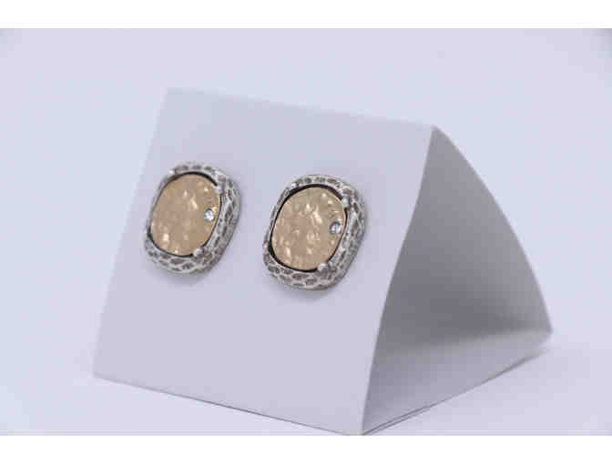 These Vintage coin fashion pierced earrings will enhanced any style and fashion. A cubic zirconia is embedded in each gold coin and surrounded by vintage silver.