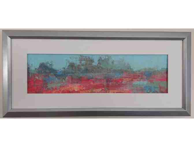 Veil of Light is a painting in acrylic and pastel with a white mat and silver frame measuring 26“ x 12“.