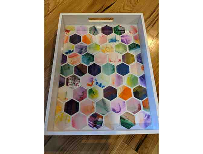 Decorative Serving Trays! Take your hosting game to the next level and wow your guests with these beautiful serving trays! Made with love and sealed with food-grade silicone caulk, these stunningly colorful trays would make a perfect wall-mounted art piece, but their sturdy construction also makes them ready for action. Bid now to bring home a piece of your child's history!
