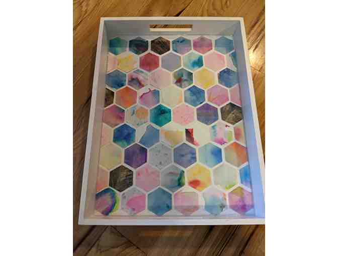 Decorative Serving Trays! Take your hosting game to the next level and wow your guests with these beautiful serving trays! Made with love and sealed with food-grade silicone caulk, these stunningly colorful trays would make a perfect wall-mounted art piece, but their sturdy construction also makes them ready for action. Bid now to bring home a piece of your child's history!