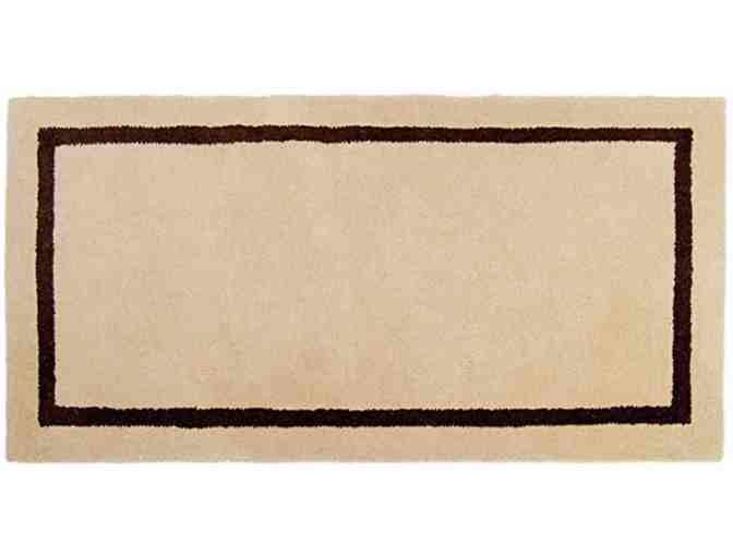 This contemporary rug "Mesa Tan" measures 44" W x 22" L. A rug pad is recommended. Made in India. Rug is new, never used.