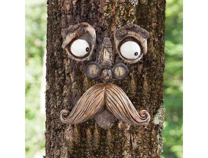 A delightful surprise on a tree or fence, this funny old man seems to emerge from the bark or wood with watchful eyes. Comes with four pieces, measuring approx. 8" x 10" when spaced to your liking. Looks best when the tree is at least 8" wide. Made of durable polyresin. Includes keyhole on the reverse of each piece to hang on screws or nails, not included. A perfect house warming or garden gift! New, never hung.