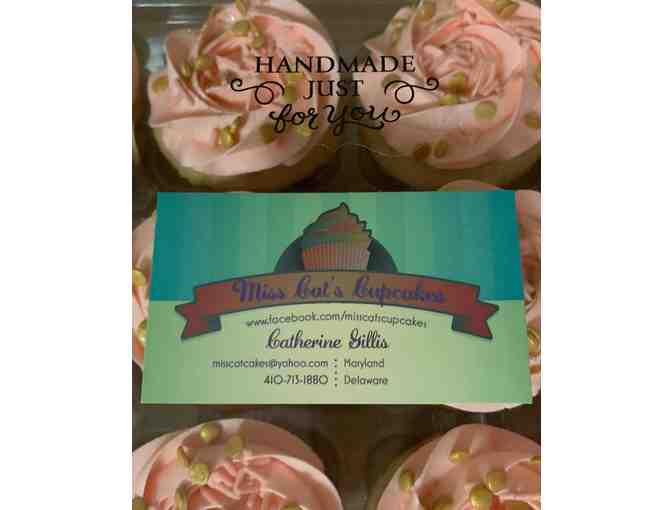 Miss Cat's Cupcakes has donated 1 dozen Pink & Gold Vanilla Bean Cupcakes.