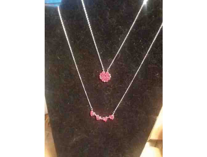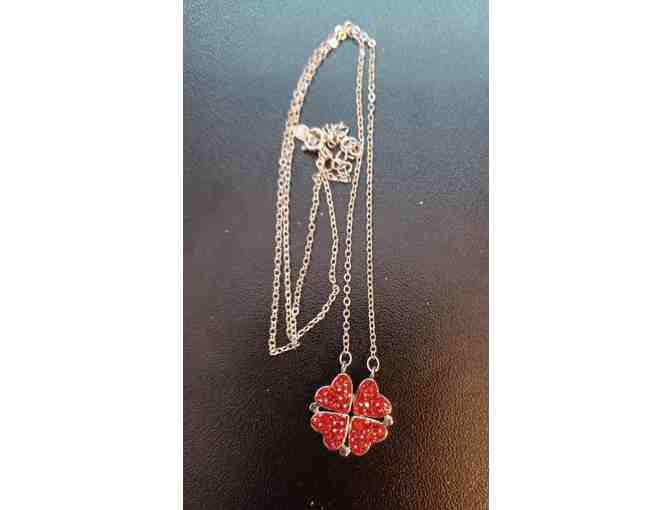 This necklace can be worn as a lucky sparkling red stones four-leaf clover - or - a string of loving sparkling red stones. This item is for one necklace, two in picture to show wearing options.