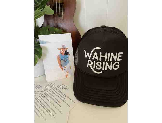 Kaua'i-made Wahine Rising hat. Super cute, high-quality women's empowerment hat! Black with white Wahine Rising logo. By Coach Stacy Ricciardi.