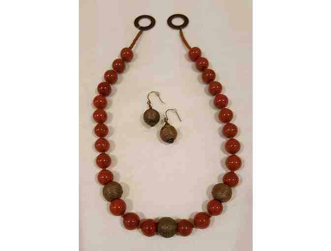 Red Jasper With African Brass Bead Necklace and Matching Earrings