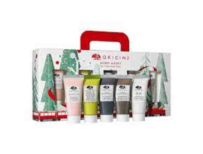 Enjoy 5 of Origins best mask minis, a set of cleanser, mask and gel moisturizer trio; Clinique mini mascara, eye make-up remover, lip gloss and moisturizer; and Benefit mini bronzer, primer and brow set.