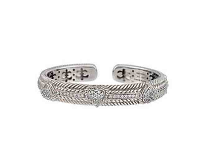Judith Ripka Estate Sterling Silver White Topaz Heart Cuff