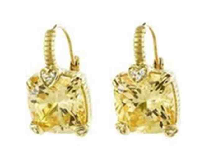 Judith Ripka 18K Gold Cushion Cut Earrings, Canary Crystal, DIA WT 0.65cts
