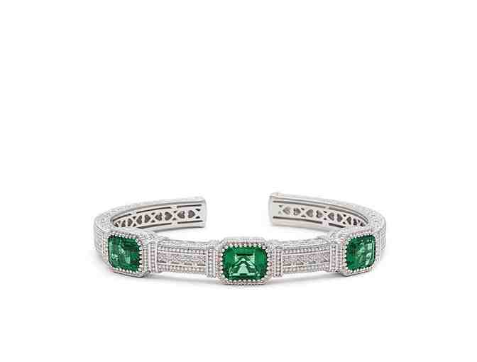 Judith Ripka Sterling Silver Estate Cuff With 3 Emerald Cut Stones, Green Quartz