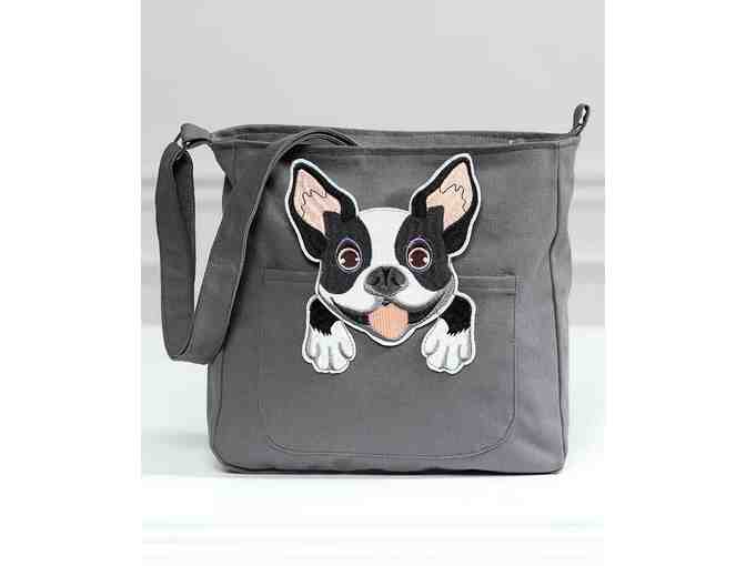 Show off your love of dogs with this this Canvas Animal Crossbody Bag. The bag is large enough to hold your daily essentials whether out shopping or walking your pup.