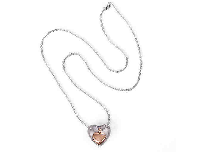 Carry the ashes of a dearly departed one close to you with this Memorial Ashes Keepsake Pendant Necklace. The Heart pendant has a silver heart with a golden heart hanging inside.