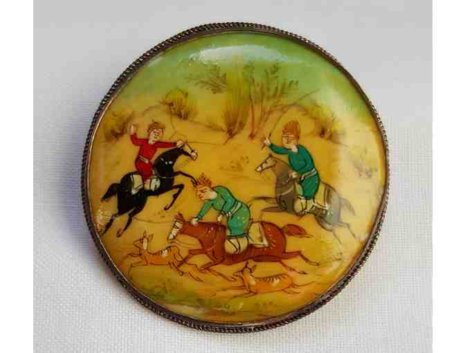 Antique Persian Hand Painted Miniature on Brooch