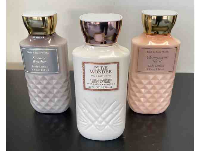 3 8oz bottles of lotion – Pure Wonder, Champagne Toast, & Sweater Weather