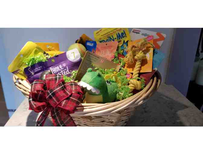 Your doggie will love the numerous toys, treats, new collar and much more in this goodie basket!
