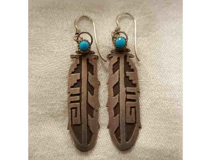 Vintage Sterling Silver and Turquoise Feather Earrings, Navajo