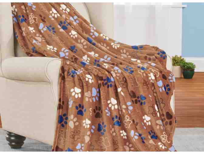 This delightful paw print blanket is the perfect way to stay cozy and warm. This blanket is super soft and features a colorful paw print pattern on a brown/tan background. Perfect for netflix and chill with your favorite fur baby.