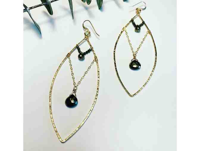 14k gold filled hammered earrings with pyrite gemstones. Handmade on Kaua'i.