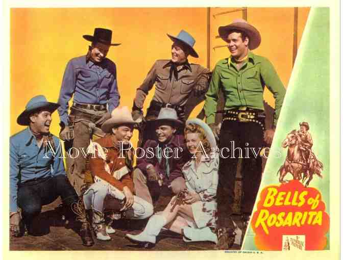 BELLS OF ROSARITA, 1945, REPRO lobby card, Roy Rogers, Hayes, Evans