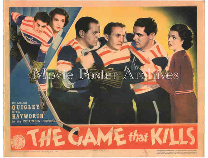 The Game That Kills, the 1937 D. Ross Lederman ice hockey murder mystery starring Charles Quigley, Rita Hayworth, John Gallaudet, J. Farrell MacDonald, Arthur Loft, John Tyrrell, Paul Fix, Dick Wessel and Maurice Black.
