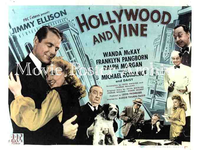 Hollywood and Vine, the 1944 Alexis Thurn-Taxis California romantic comedy starring James Ellison, Wanda McKay, Franklin Pangborn, Ralph Morgan, Michael Romanoff and Daisy the dog.