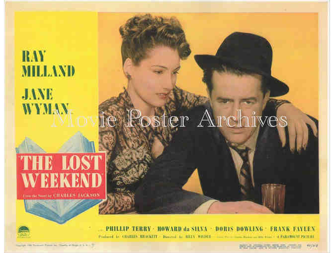 The Lost Weekend, the classic 1945 Billy Wilder family alcoholic drama starring Ray Milland, Jane Wyman, Howard Da Silva, Phillip Terry, Doris Dowling, Frank Faylen and Mary Young.