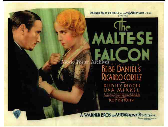 The Maltese Falcon, the 1931 Roy Del Ruth crime detective mystery drama starring Bebe Daniels, Richard Cortez, Dudley Digges, Una Merkel, Robert Elliott, Thelma Todd, Otto Matieson and Dwight Frye.