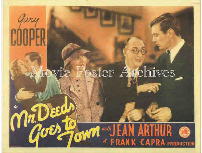 MR. DEEDS GOES TO TOWN, 1936, REPRO lobby card, Gary Cooper, Jean Arthur, Lionel Stander