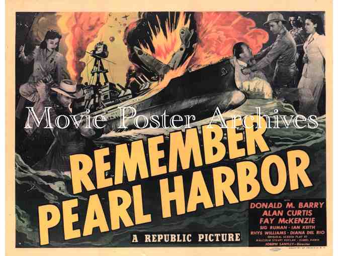 Remember Pearl Harbor, the 1942 Joseph Stantley WWII military thriller starring Don Red Barry, Alan Curtis, Fay McKenzie, Sig Ruman, Ian Keith, Rhys Williams and Diana Del Rio.
