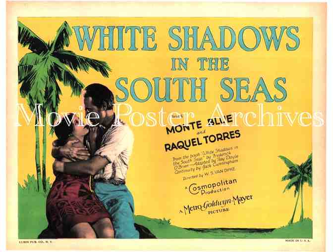 WHITE SHADOWS IN THE SOUTH SEAS, 1928, REPRO title card, Monte Blue, Raquel Torres
