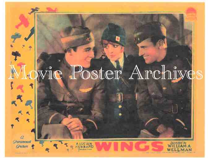 Wings, the 1927 William A. Wellman silent/talking WWI military aviation romantic drama starring Clara Bow, Charles Buddy Rogers, Richard Arlen, Arlette Marchal, Gary Cooper, Jobyna Ralston, El Brendel, Richard Tucker and Roscoe Karns.