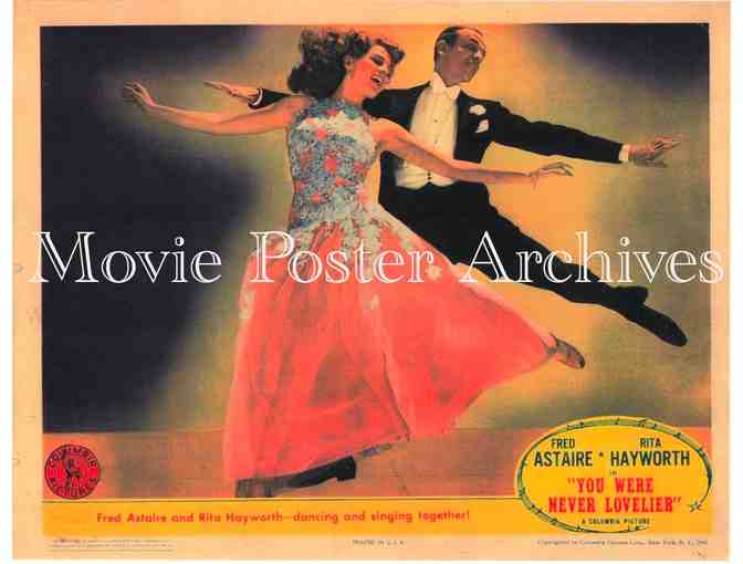 You Were Never Lovelier; the 1942 William A. Seiter Argentine musical romantic comedy starring Fred Astaire; Rita Hayworth; Adolphe Menjou; Isobel Elsom; Leslie Brooks; Adele Mara; Xavier Cugat and His Orchestra; Lina and Miguelito Valdes.