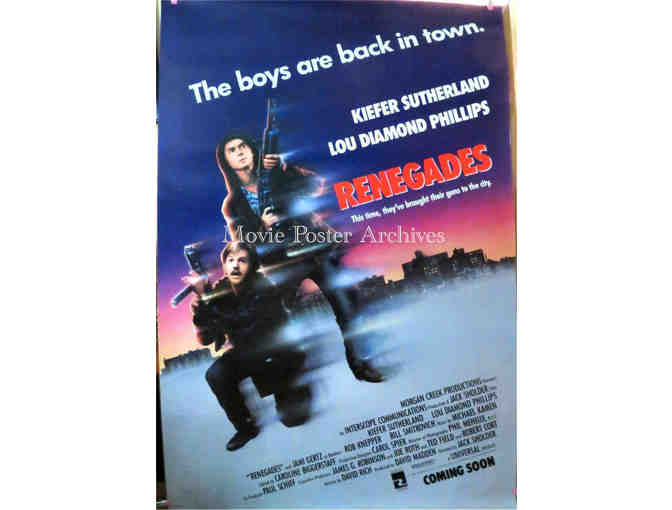 Renegades, the 1989 Jack Shoulder crime action thriller starring Kiefer Sutherland, Lou Diamond Phillips, Jami Gertz, Robert Knepper, Bill Smitrovich, Clark Johnson and Peter MacNeill.