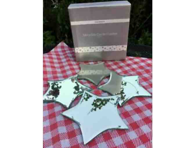 Set of 4 in Box with foam sheets separating each coaster as well as foam surrounding the stars themselves.