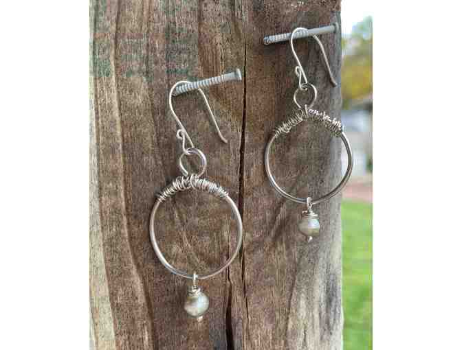 One inch round sterling silver earrings with fresh water pearl dangle.
